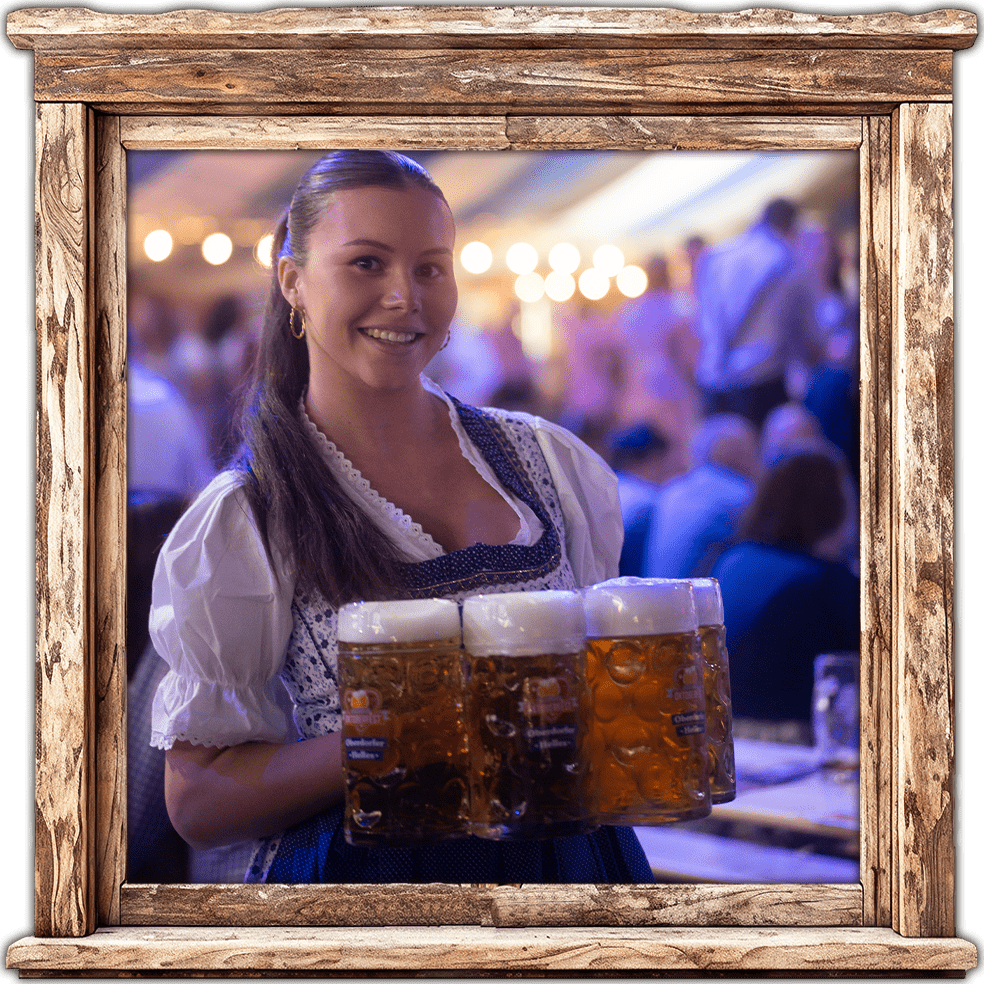 De huidige selectie is gebaseerd op het dranken- en spijzenmenu van 2025. Het aanbod voor 2026 zal hierop gebaseerd zijn – we zullen het definitieve menu tijdig voor het Oktoberfest publiceren.